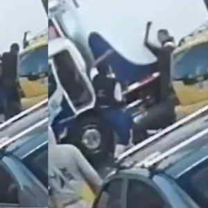[Video] Un taxista y el conductor de un furgón se encendieron a leñazos y uno cayó noqueado