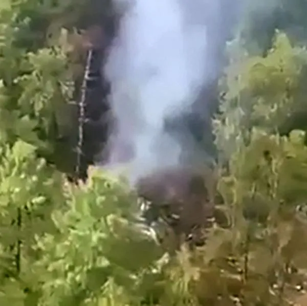 En las imágenes se ve una columna de humo que se eleva en medio de numerosos árboles y llamas cerca de lo que parecen ser restos del aparato.