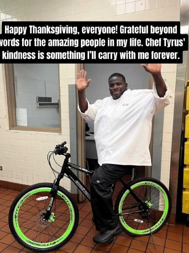 Al llegar, el joven le explicó al chef Tyrus, como dijo llamarse, lo sucedido. A lo que el chef, con una actitud de comprensión, le pidió una foto de la bicicleta robada.